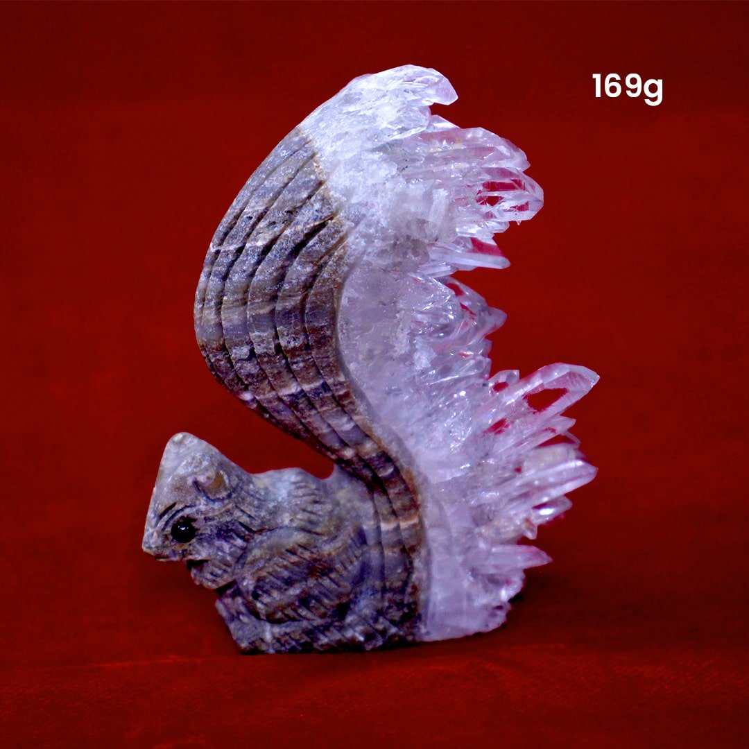 Agate & Clear Quartz Point Squirrel Figurine is a charming crystal piece promoting balance, protection, clarity, and positivity.