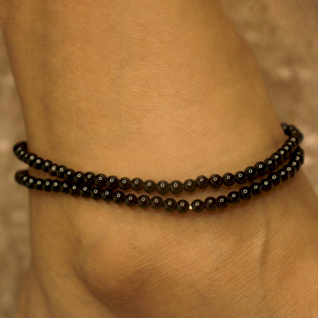 A protective black tourmaline anklet designed to ground your energy and shield against negative influences.