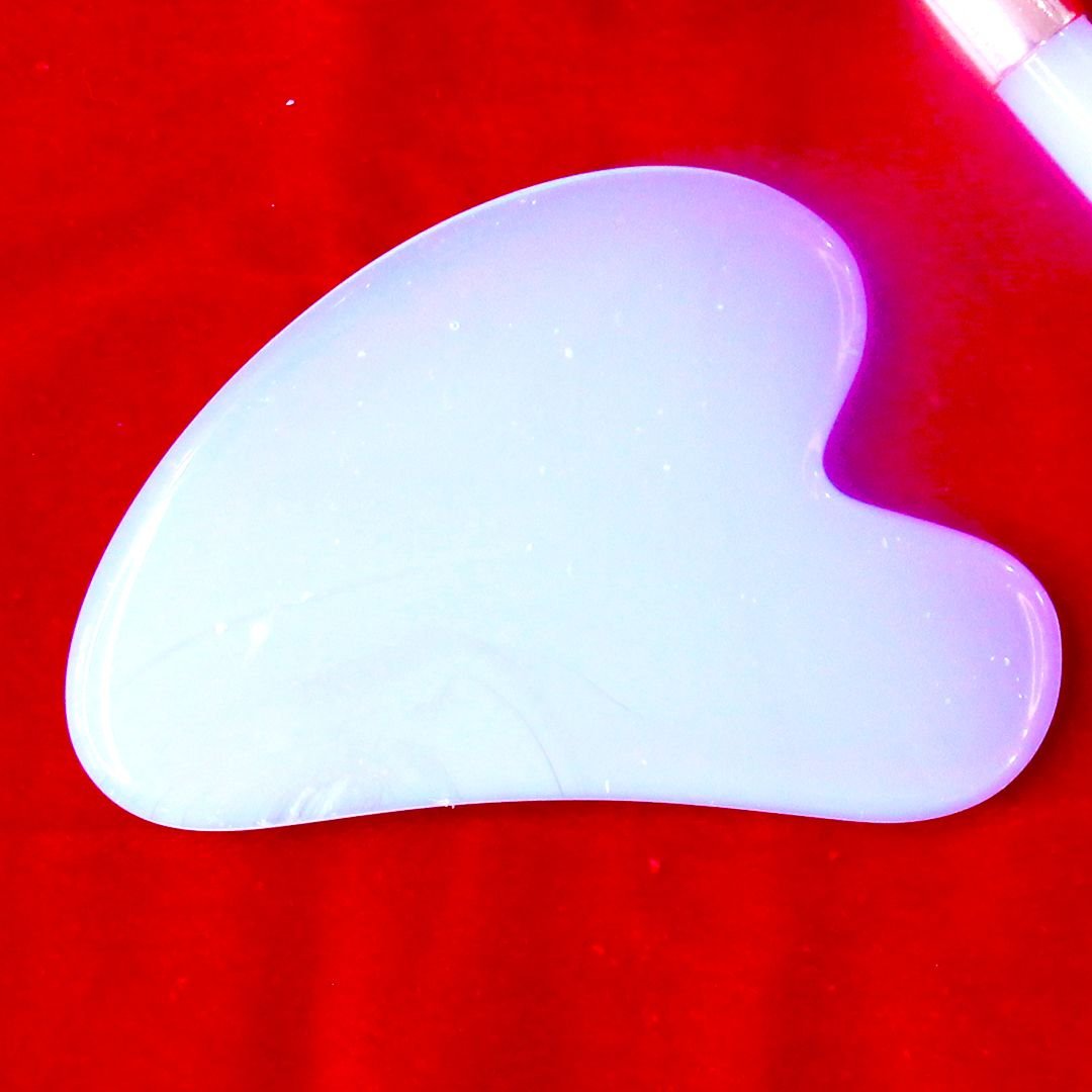 An Opal Lustreveil ritual set featuring a gua sha and face roller designed for facial renewal, relaxation and mindful self-care.