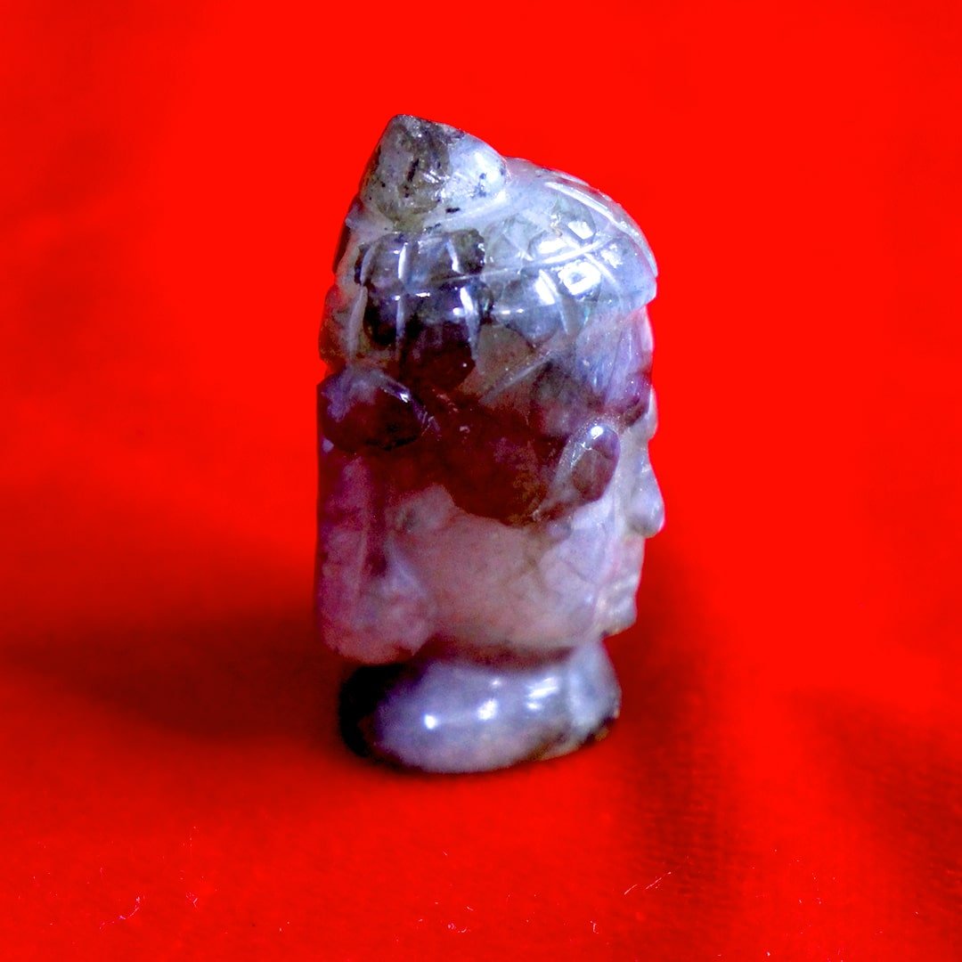 The Labradorite Buddha Figurine – emits mystical energy that fosters transformation, protection, and spiritual awakening. Known for its iridescent flashes, Labradorite enhances intuition and shields against negative energies. This detailed Buddha figurine serves as a powerful meditation aid and a striking symbol of serenity and inner wisdom in any space.
