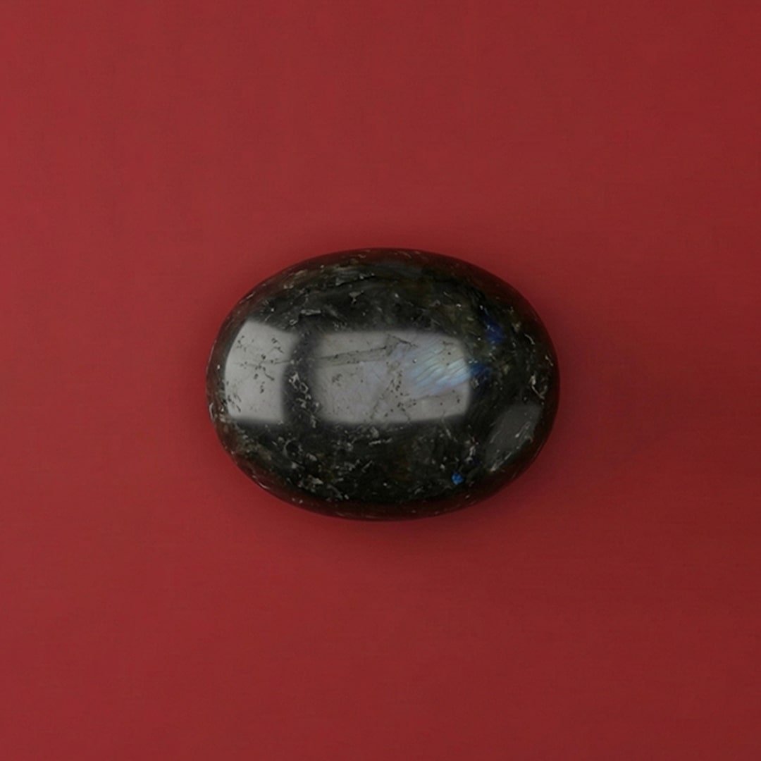 Polished labradorite egg radiating protective energy, intuition, and transformation—ideal for meditation, healing practices, or elegant spiritual décor.