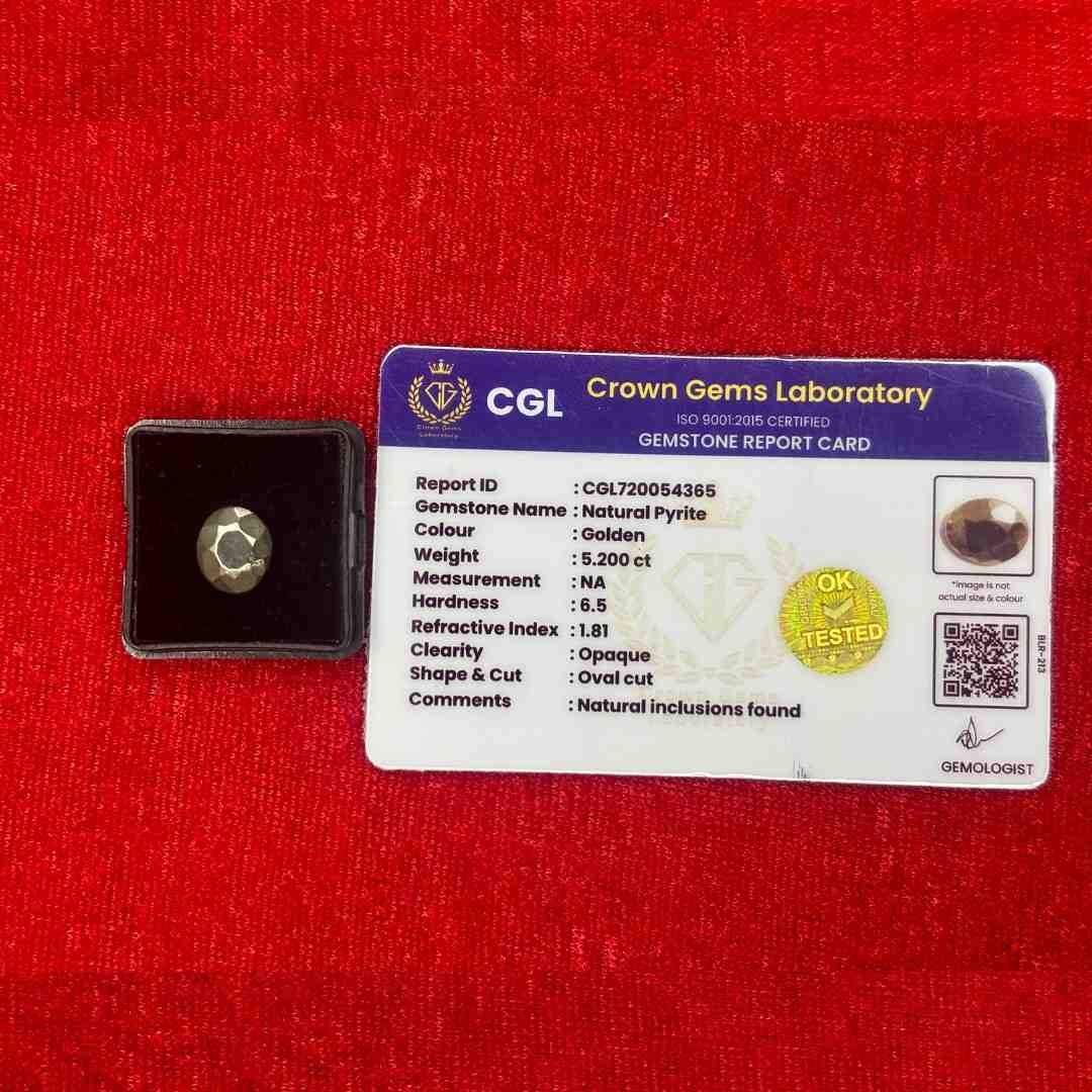 Pyrite 5.20 carat oval cut is known for wealth, confidence and success-oriented energy. Often referred to as a “money magnet”, pyrite is associated with financial growth, strong decision-making and a success-driven mindset.