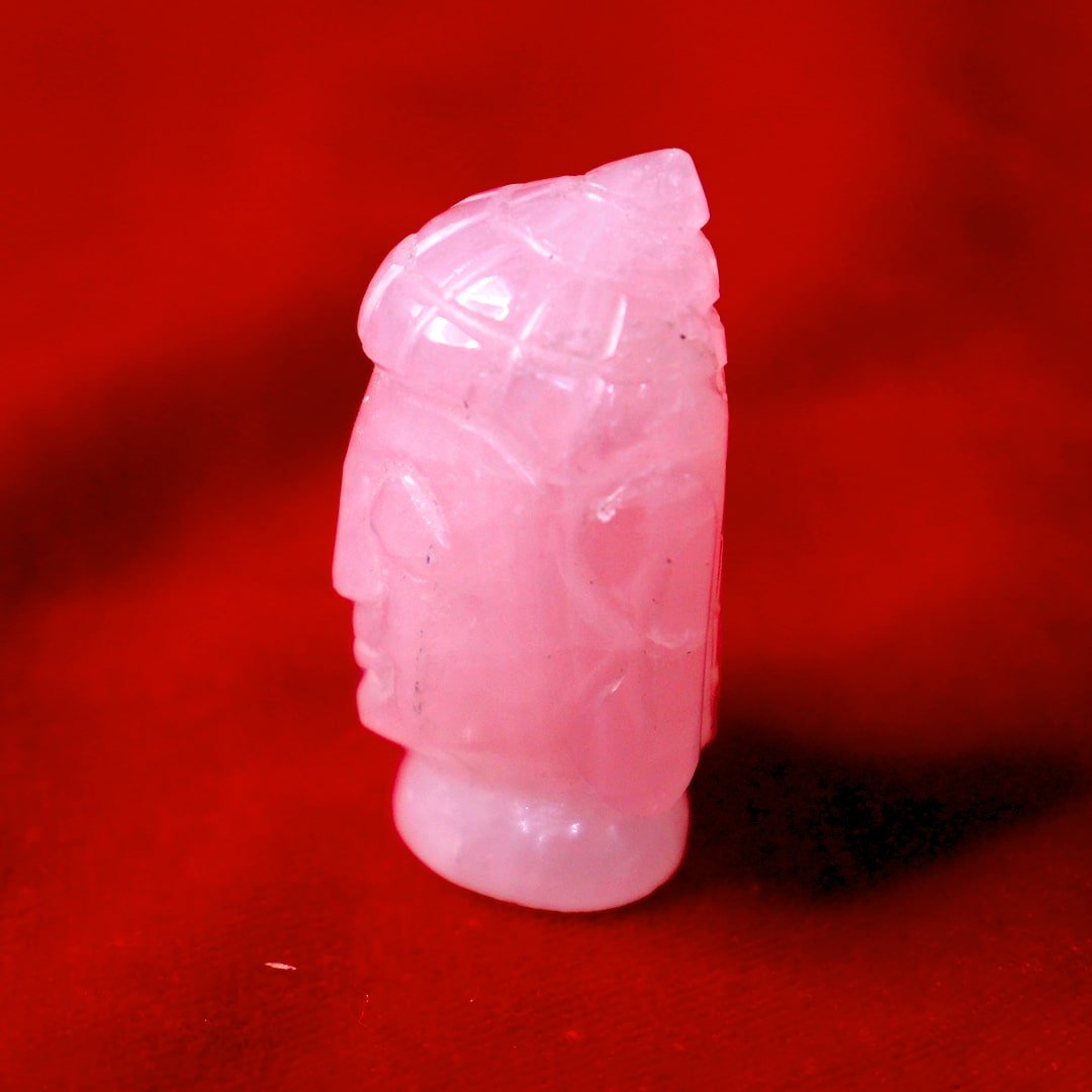 The Rose Quartz Buddha represents the sacred harmony between enlightened wisdom and compassionate love. Buddha is revered as the symbol of inner peace, mindfulness and spiritual awakening, while Rose Quartz is traditionally associated with unconditional love, emotional healing and gentle harmony. Carved from natural Rose Quartz, this serene figurine carries a calming and nurturing presence. Rose Quartz has long been valued as a stone of the heart, encouraging compassion, emotional balance and peaceful relationships. When combined with the tranquil symbolism of Buddha, this sacred form becomes a powerful reminder of mindful living, kindness and emotional balance. Placing the Rose Quartz Buddha within a home altar, meditation space or personal sanctuary symbolically invites peaceful energy while nurturing compassion, emotional healing and inner harmony. SPIRITUAL SIGNIFICANCE • Represents Buddha – symbol of enlightenment, peace and mindful awareness • Rose Quartz encourages love, compassion and emotional healing • Promotes calmness, harmony and heart-centred balance • Ideal for meditation spaces, altars and peaceful home décor HOW TO USE Place the Rose Quartz Buddha in a meditation corner, bedroom altar or sacred space. It may also be kept in living areas to promote peaceful energy, compassion and emotional harmony within the home.