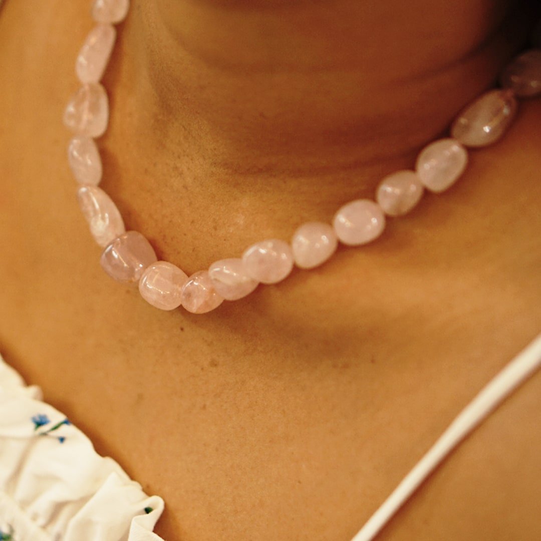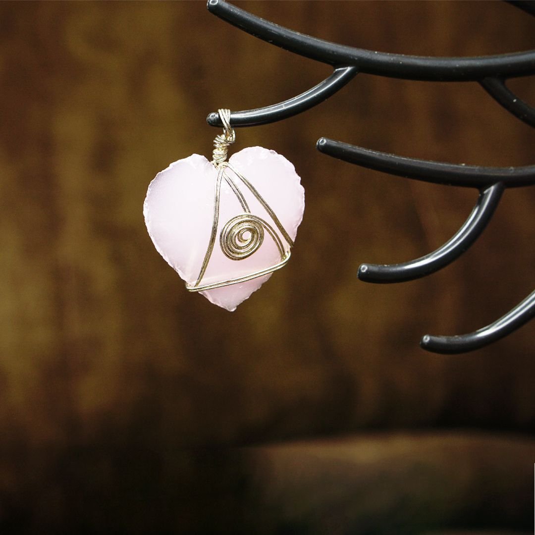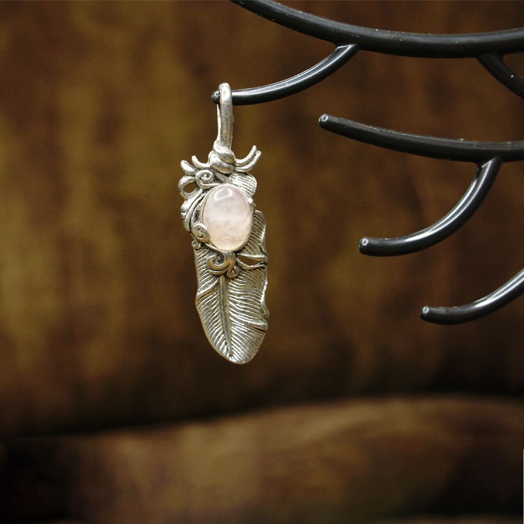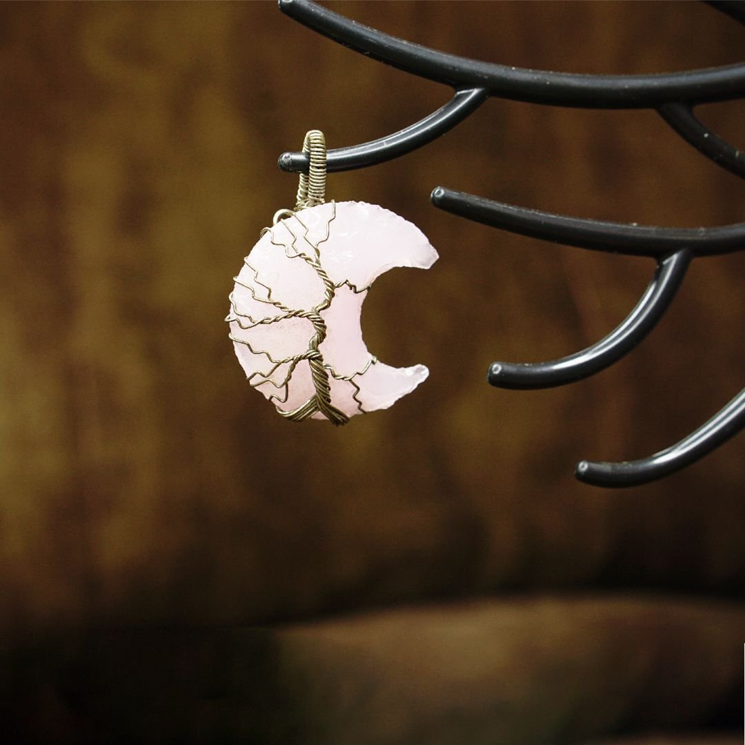 Rose Quartz Crescent Moon Tree of Life Pendant