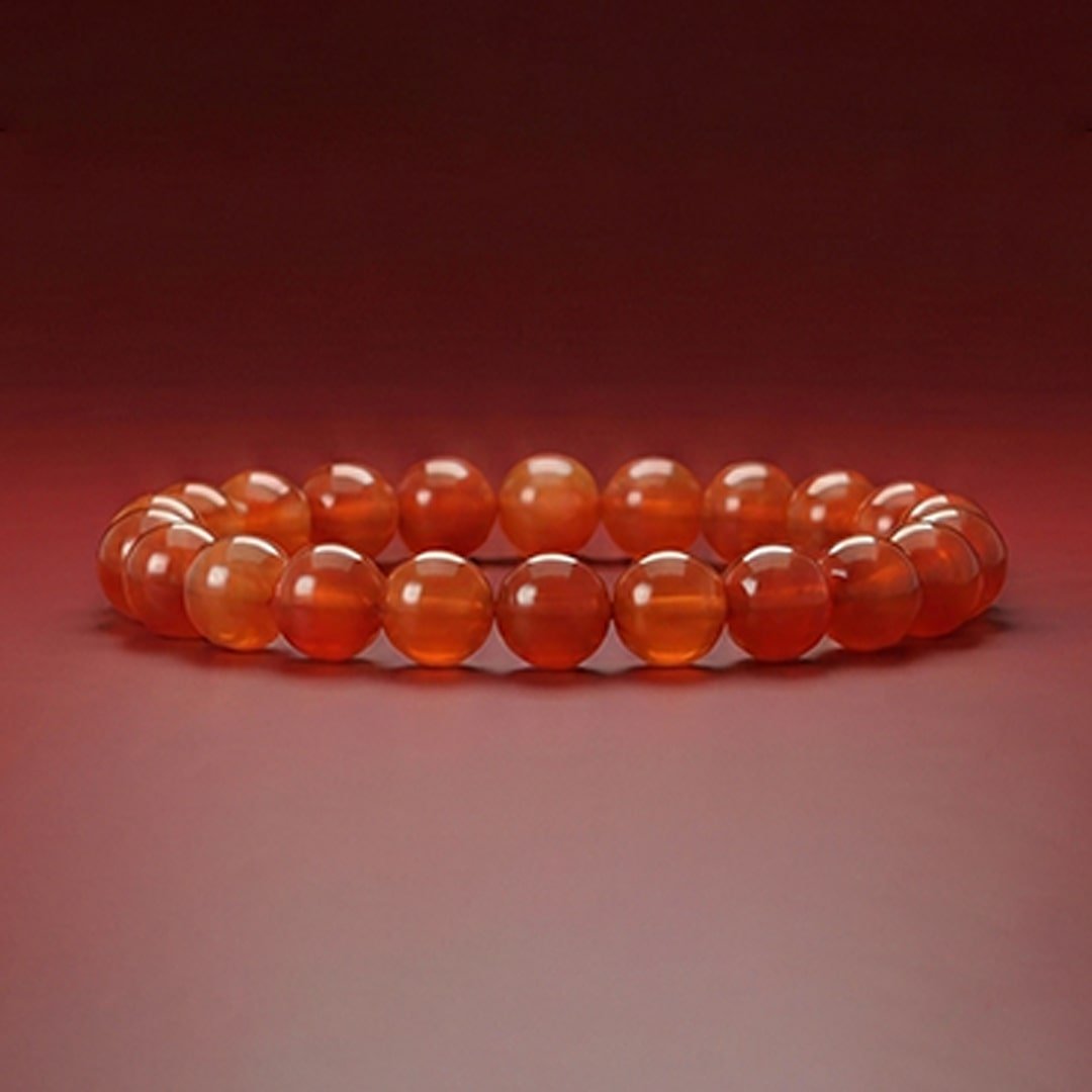 A vibrant carnelian bead bracelet symbolizing confidence, motivation, and vitality, perfect for daily wear and energizing spiritual balance.